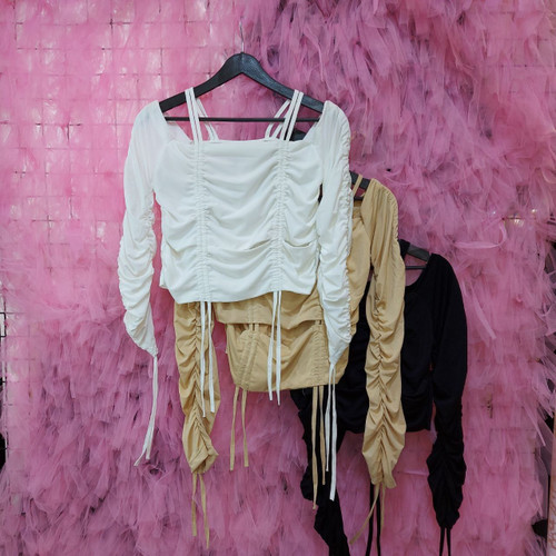 کراپ تاپ دو تیکه سفید مشکی با رویه